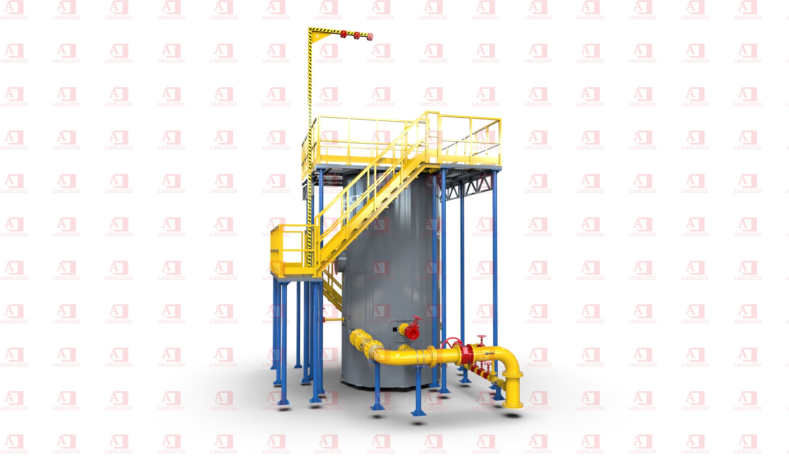 Доступ на рабочую площадку второго уровня осуществляется по стальной маршевой лестнице.
